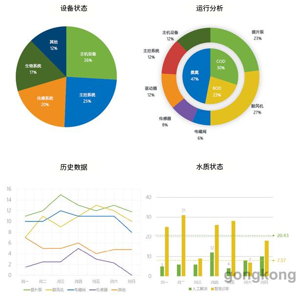 實(shí)時(shí)查看設(shè)備現(xiàn)場(chǎng)工作情況,水質(zhì)在線檢測(cè),自動(dòng)優(yōu)化工藝過(guò)程控制