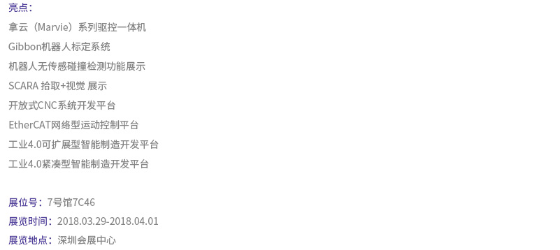 本次展會分三大主題展區(qū):國際機床展、國際工業(yè)零件展、國際機器人及工廠智能化展,固高科技于國際機器人及工廠智能化展區(qū)為大家展示了固高的新產(chǎn)品!