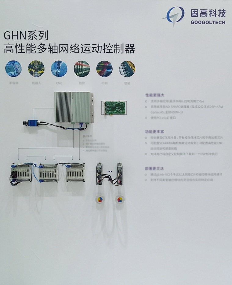 GHN系列高性能多軸網(wǎng)絡(luò)運(yùn)動(dòng)控制器可用于非標(biāo)自動(dòng)化裝備(檢測(cè)機(jī)、組裝機(jī)、點(diǎn)膠機(jī)、插件機(jī))、CNC、機(jī)器人、半導(dǎo)體、紡織、包裝、流水線工作站等。