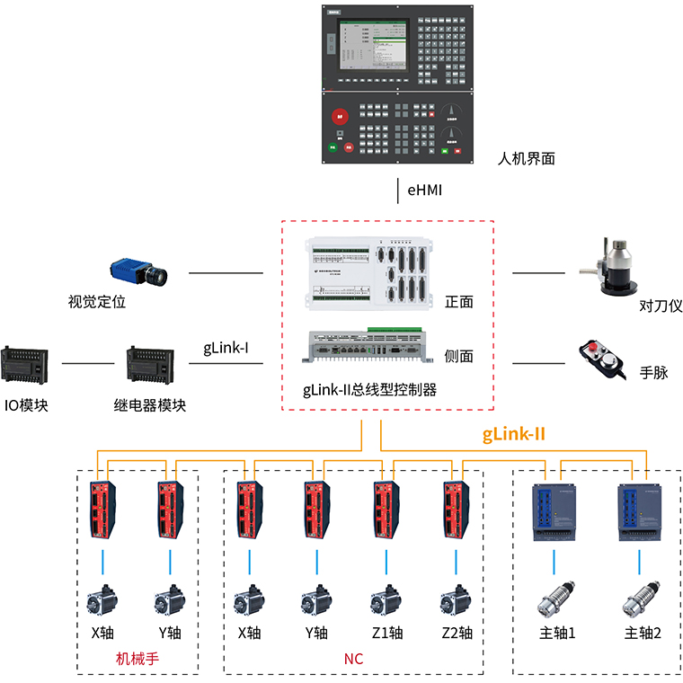 ● 一體化控制器:集CNC、機(jī)械手和視覺定位于一體