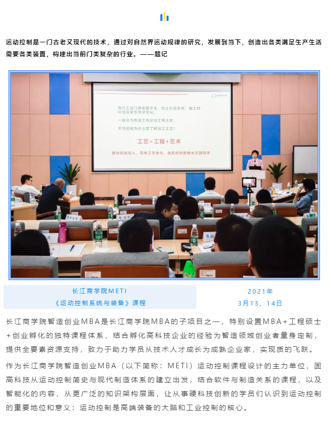 科技賦能商業(yè) | 固高科技攜手長江商學院智造創(chuàng)業(yè)MBA開設(shè)《運動控制系統(tǒng)與裝備》課程