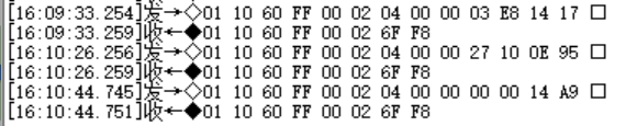 01 03 04 00 00 00 03 BA 32 //讀到數(shù)值是 0x0003