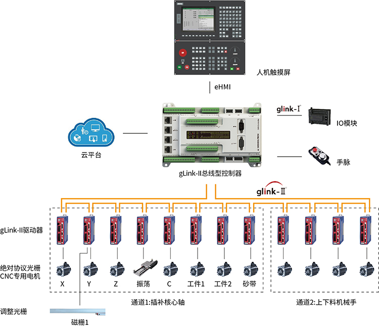 基于gLink-II總線GNS高性能控制器最多支持24軸,硬件接口豐富,內(nèi)置UPS掉電保護,多類總線實現(xiàn)設(shè)備間互聯(lián)互通控制。